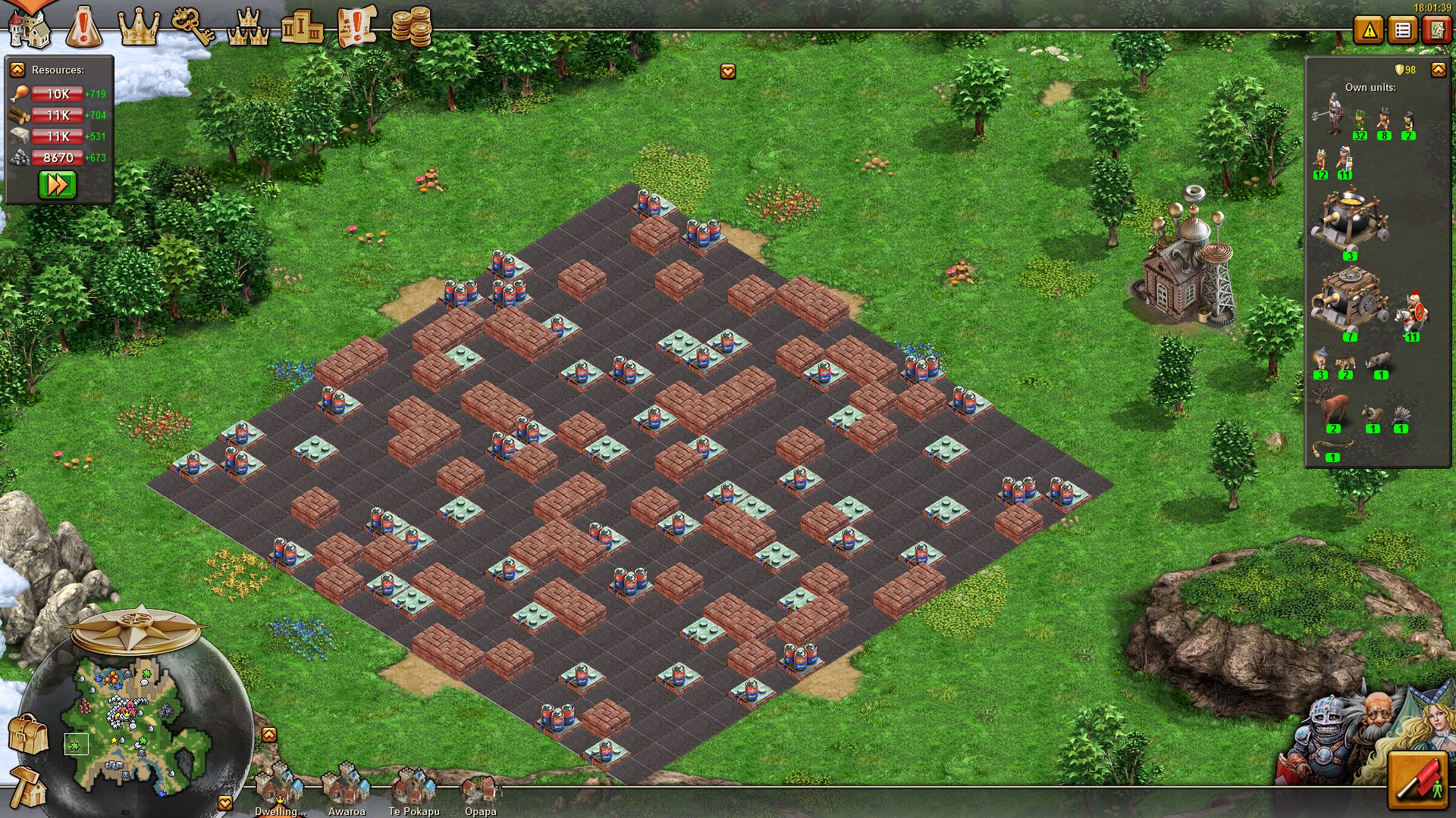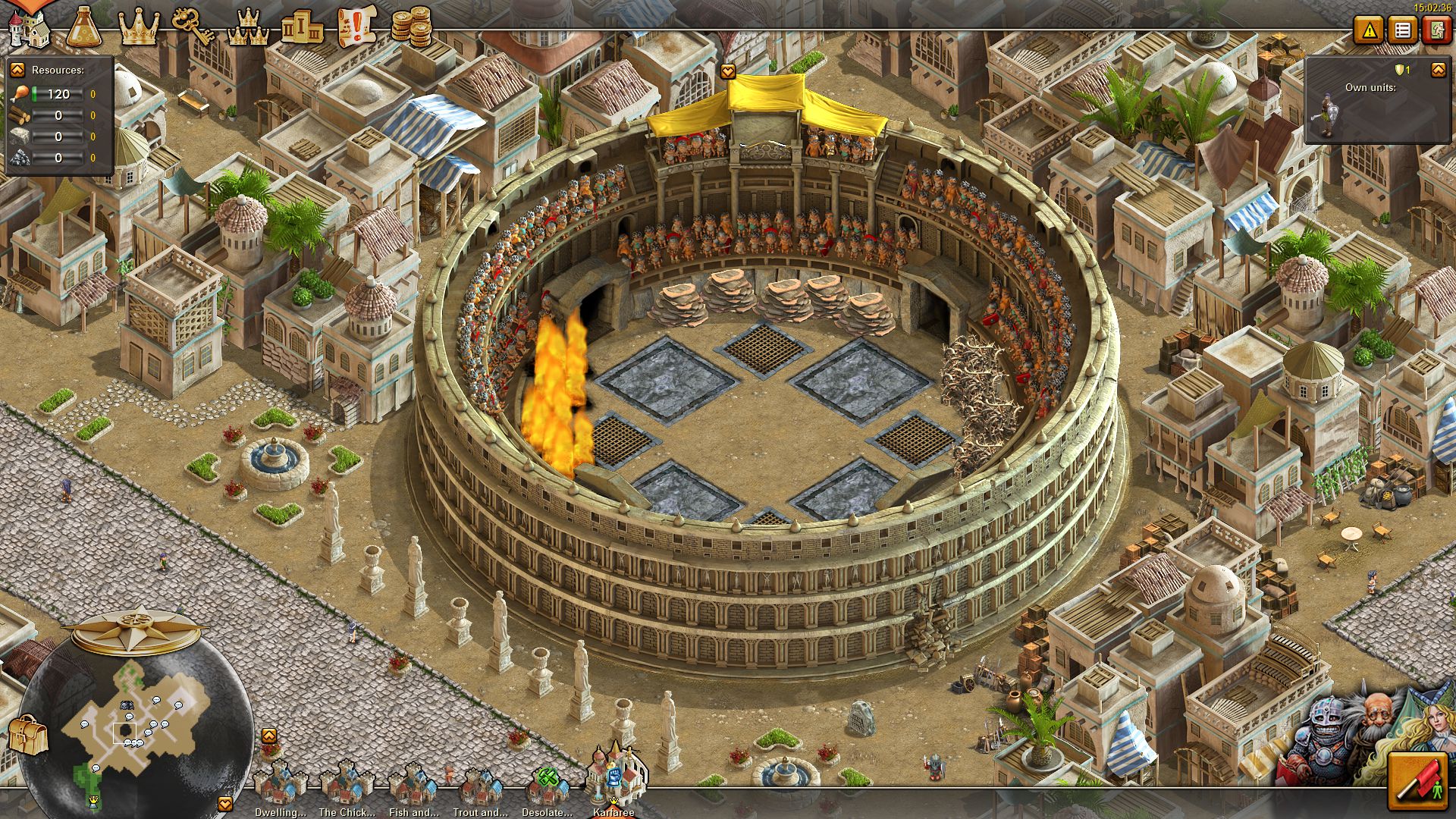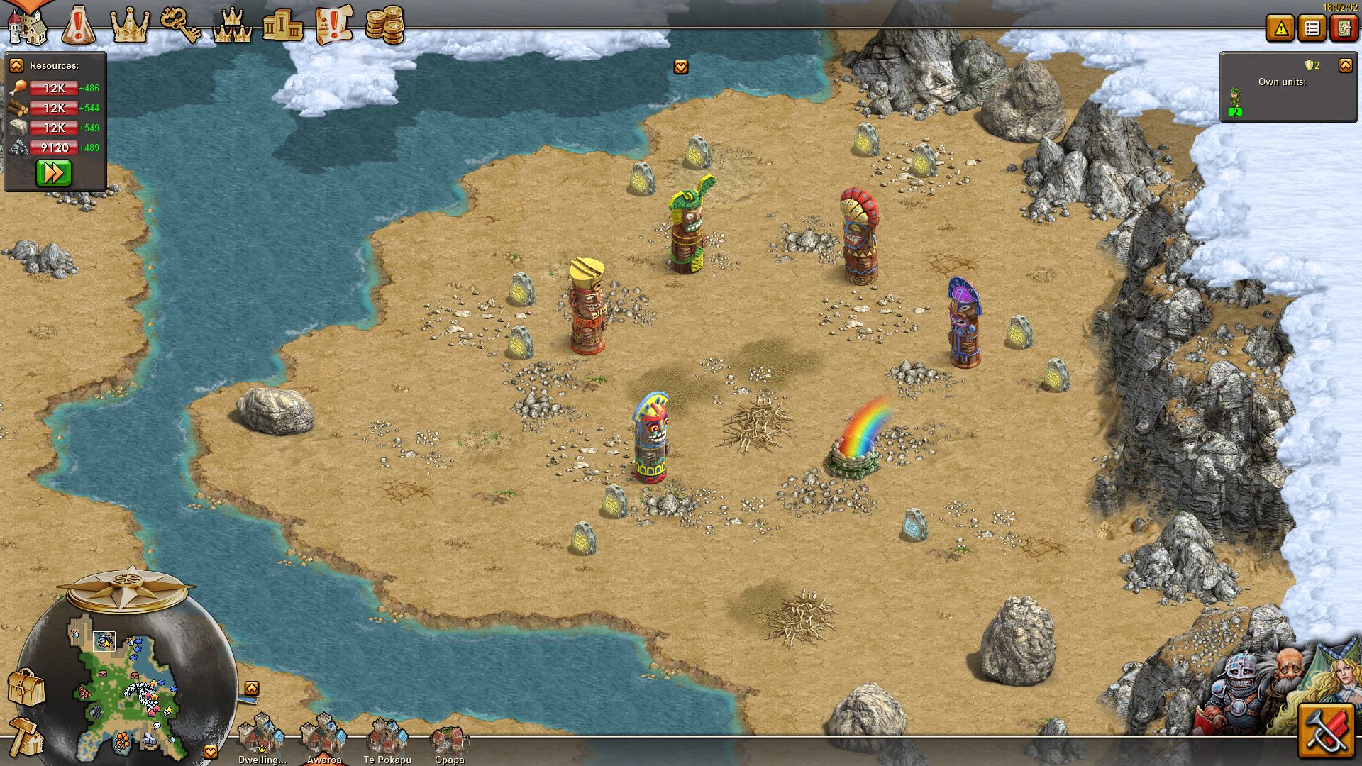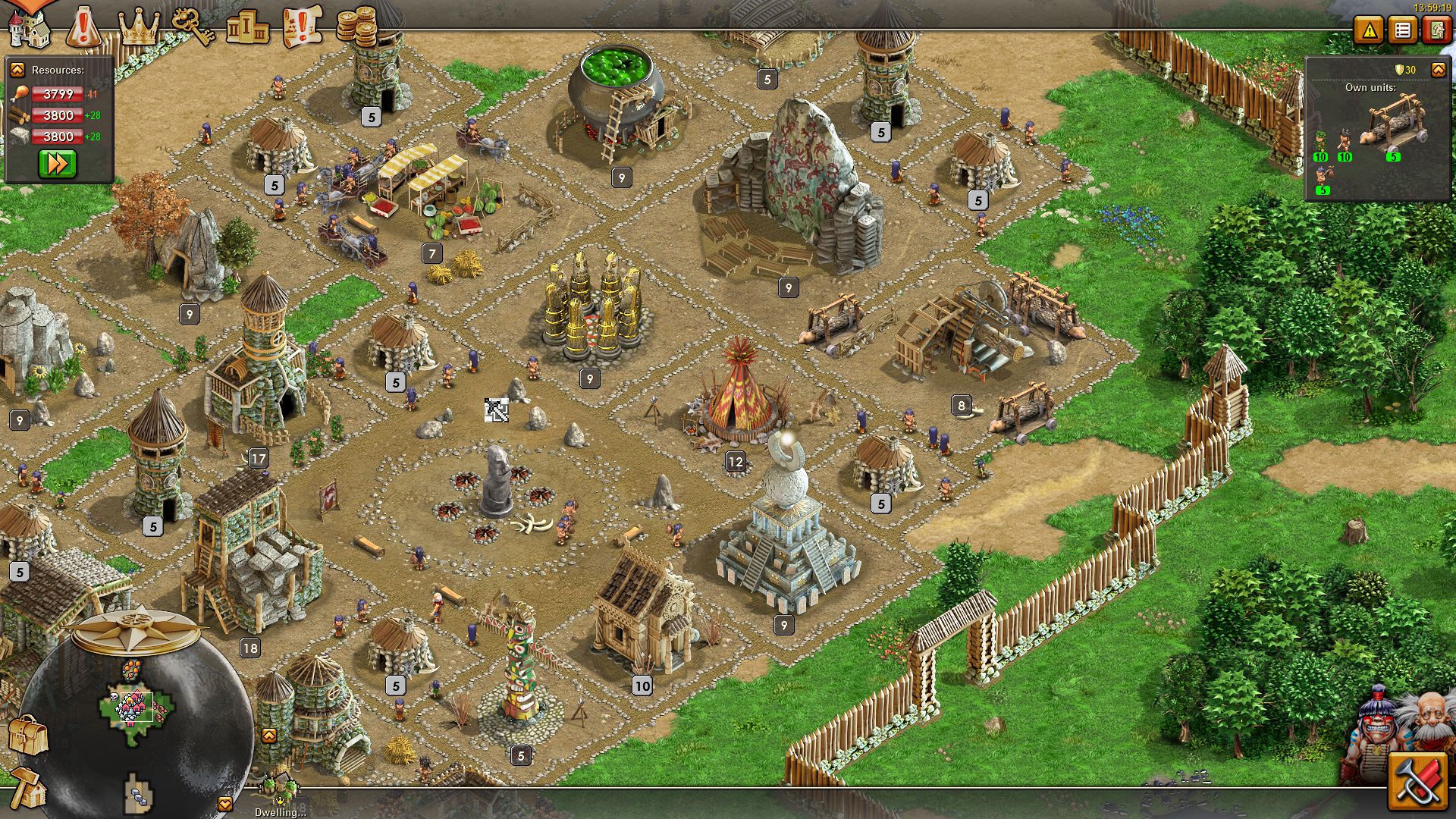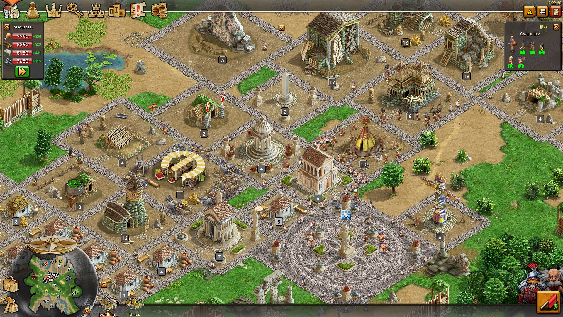Your heroic journey begins with a primitive tribe making their first village in the Stone Age. Through research and development, you’ll advance through the ages: Classical, Medieval, Renaissance, Industrialization and finally Space Age! It is quite possible to see primitive tribesmen throwing stones at flying saucers!
