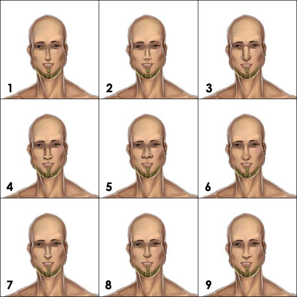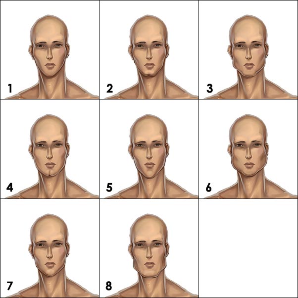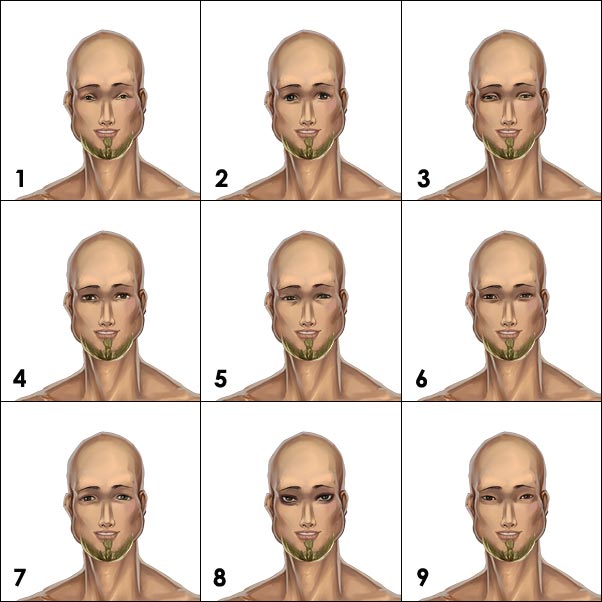 Male Chin 1 - Chin 2 - Dimpled chin 3 - Strong 4 - Cleft chin 5 - Pointy 6 - Round 7 - small chin 8 - Square