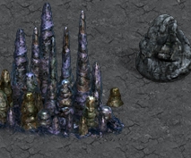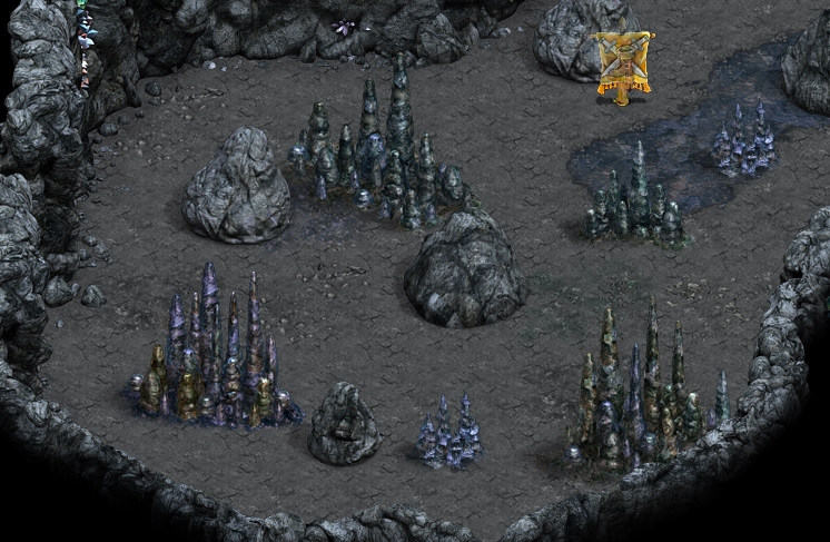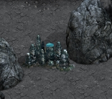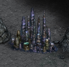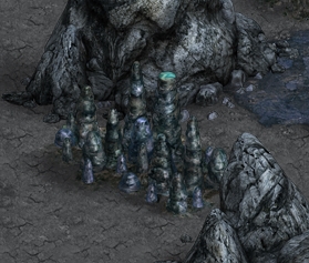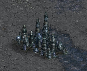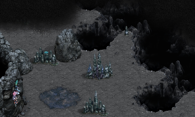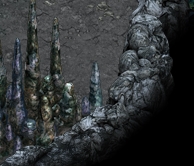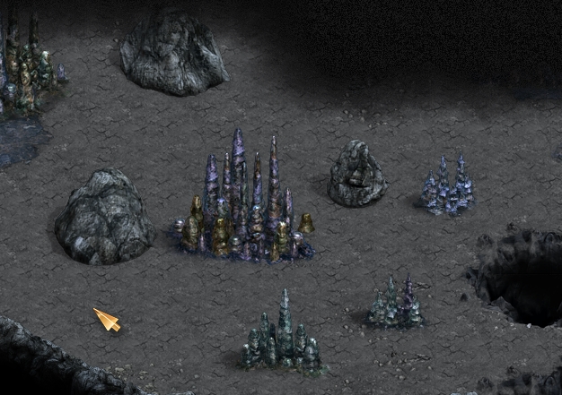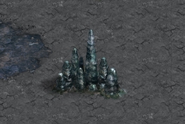 2. Stalagmites Caves are divided into sections. The longer the cave the more sections it will have and these can also be longer themselves. There are different types of sections: monsters, traps, moving rocks, hidden objects, stalgmites, etc. Some of those are pretty straightforward and do not need any further explanation - simply kill all the monsters and there you go! ;p Two of them however are pretty tricky: stalgmites and traps. Stalagmite sections have blocks that are missing a piece and block your way unless you replace the missing tip. So far these have given players the most headaches, as sometimes tips are very smartly hidden. Probably the most important thing to note here is that the missing tips are WITHIN the section (or, at least, I've never found any outside of it) - so the searching space is limited. The second imprortant thing is there are only 4 types of stalagmite blocks that can be chipped and the tips are different for each of them. It is MUCH easier to find one if you now precisely what you are looking for. So let's go through them all. Type 1.
