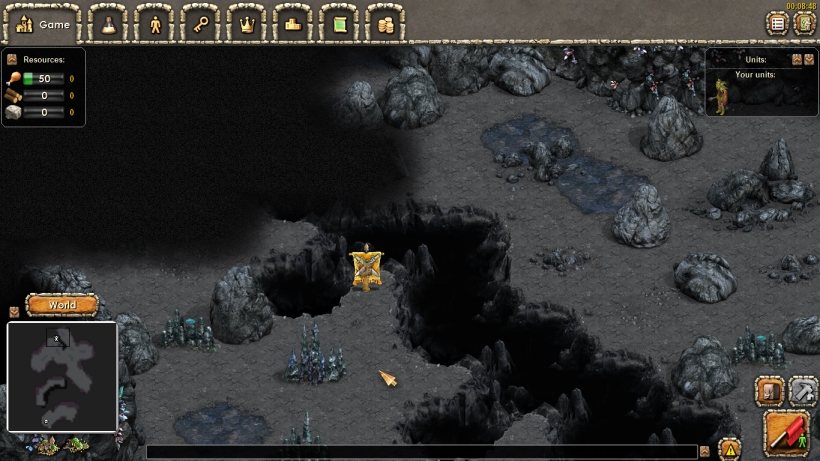If you trace those rings out further into the world, on each multiple of 7 you will find a cave (well, only until the 28th). In principle - if you really have nothing to do and badly need a cave - you could send your explorers to uncover only the squares on those particular rings, but of course there's other interesting stuff in between :) The other type of caves can be explored when you find maps for them. In most cases these can be found in your towns (chests especially) but again there's a rule. The maps can be found when your hero reaches a certain level and again the more difficult/lengthy the cave, the higher level you will need. Maps should be found after hero reaches level 10, 15, 20, 25, and 30. If you find one - post the name of it and your hero level (at the time you found it) in this thread or pm me in the game. The caves with maps are: Deep, Hidden, Sinister, Secret and Legendary.