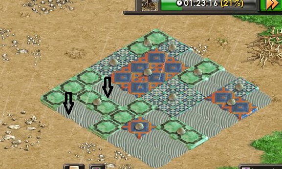 Like most of us I was having difficulty understanding what to do with the tile puzzle. But thanks to Norm, that took the time to assist me, I now understand and want to help others understand. I also want to thank Tuey for playing along so we can have these pictures. First take out of your head everything perfecto said...He talks but says nothing. He is the reason you are confused!!. forget rotational, symetrical and everything else he said. Like Einstein said "if you can't explain it simply, you don't understand it well enough :) So lets look at the puzzle .... the arrow marks the beginning point. Why there? Because it was the easiest spot I saw :) Now, all we have to do is look at the tiles and figure out where can we add tiles on opposite sides. So if we add tiles on the right side we need to be able to add the same tiles on the left side. Same principle for up and down. Also if a group of tiles is on a border, then you can't add tiles on the opposite side, since there's no space to add past the border. There can be a single tile with no other adjacent tiles in the puzzle..hope It makes sense. as you see above we added on either side of the green. You can also see where we added tiles on the right side...sorry Tuey can be impatient so we missed a pic :) Now we can do the other side of the red with diaminds to mimick this side . Above is how it looks